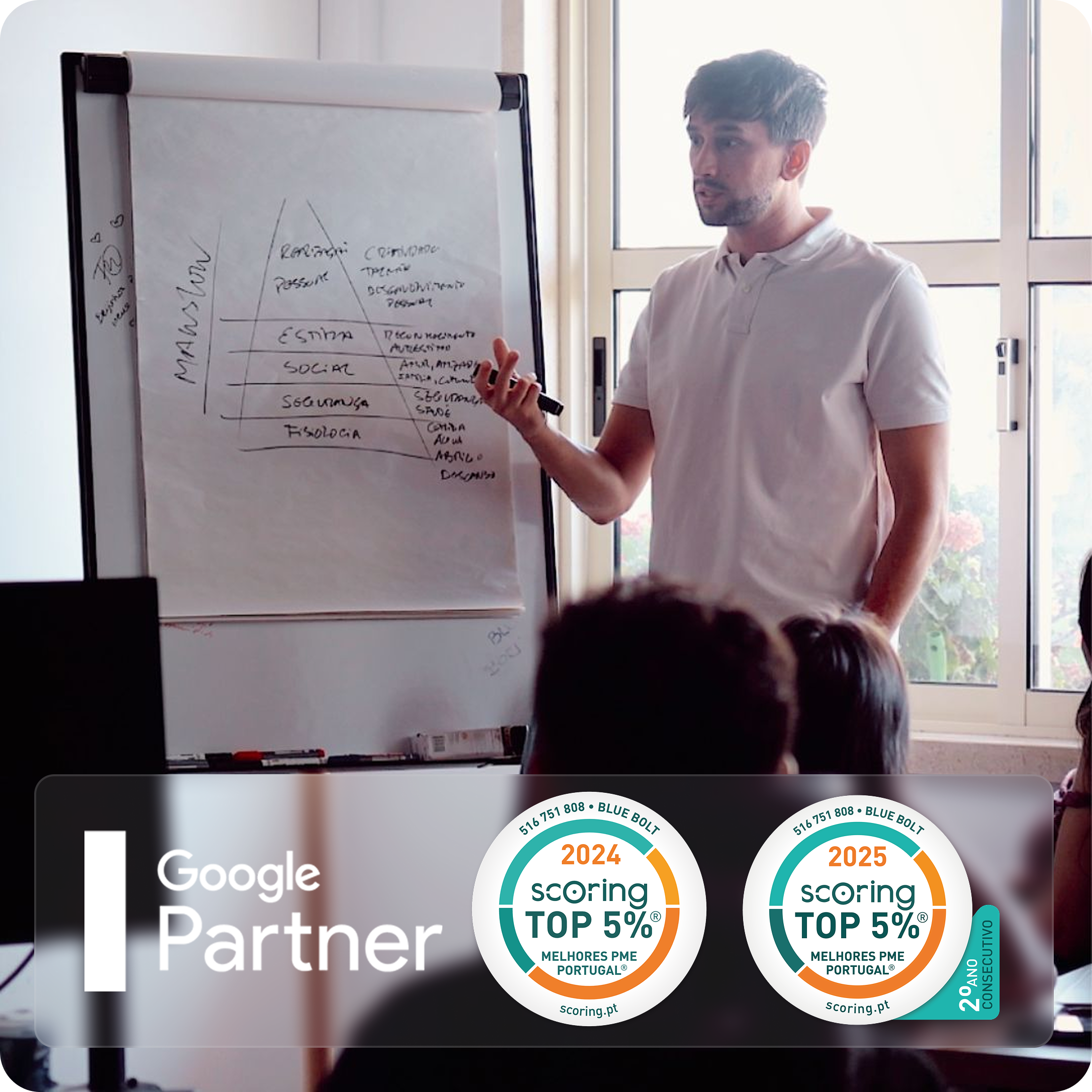 Somos Google Partner e estamos entre as Top 5% PME de Portugal, uma distinção atribuída pela qualidade do desempenho, crescimento sustentado e impacto real no mercado digital.